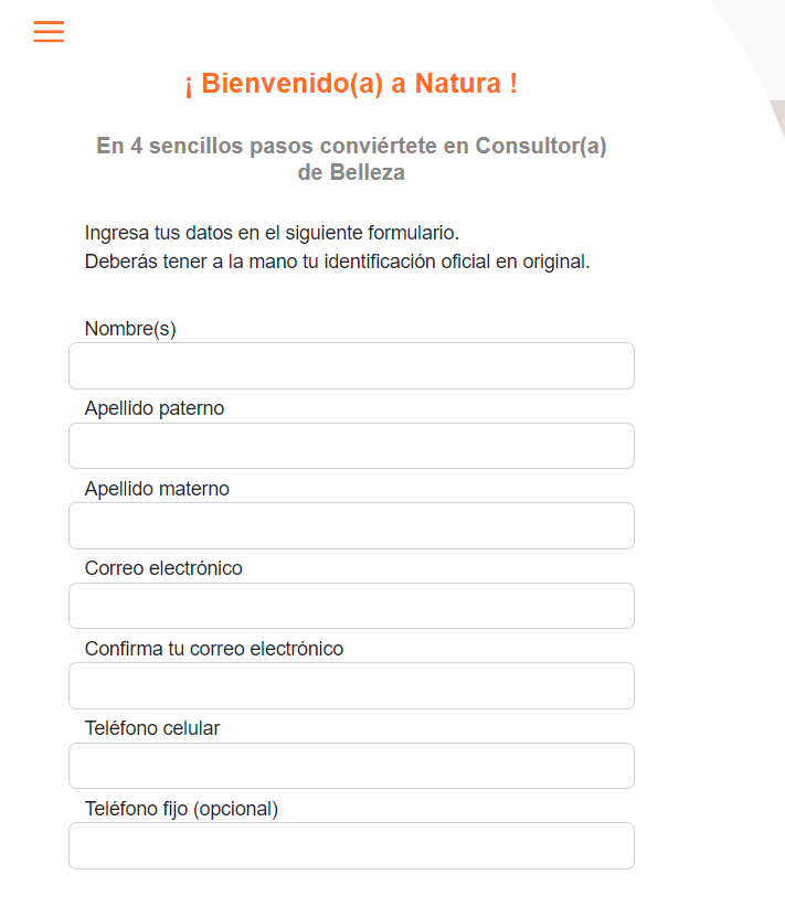 En ésta página aprenderás como inscribirse a Natura México desde la página oficial para tal fin. Para ello hemos puesto a tu disposición éste pequeño tutorial que te dará paso a paso como hacer tu registro de manera rápida y fácil. Con tu registro podrás vender Natura y así comenzar una carrera en el increíble mundo de la cosmética vegana con mayor crecimiento. Además de disfrutar muchos beneficios e inclusive ganar autos y viajes si eres muy constante.