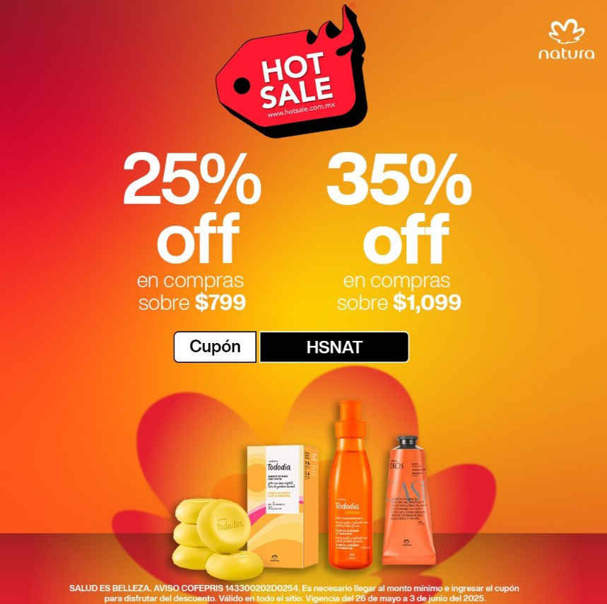 En ésta página encontrarás las ofertas y descuentos que están disponibles en el Hotsale Natura México 2025. Recordemos que ésta importante fecha para aprovechar rebajas en línea en millones de prodcutos, es una iniciativa de La Asociación Mexicana de Venta Online, A.C. (AMVO). La cual es una organización civil sin fines de lucro que tiene como fin desarrollar e impulsar de manera integra el comercio electrónico en México. De ésta manera Natura se suma a estos esfuerzos para llevar a más familias lo mejor de la cosmética Amazónica a través del Hotsale aplicando las mejores prácticas de la industria e-commerce. Una industria que está en pleno auge y crecimiento. Antes de pasar a las ofertas, por favor lee detenidamente ésta sección de preguntas y respuestas que podrán ayudarte a comprender mejor esta propuesta de «ahorro digital»
